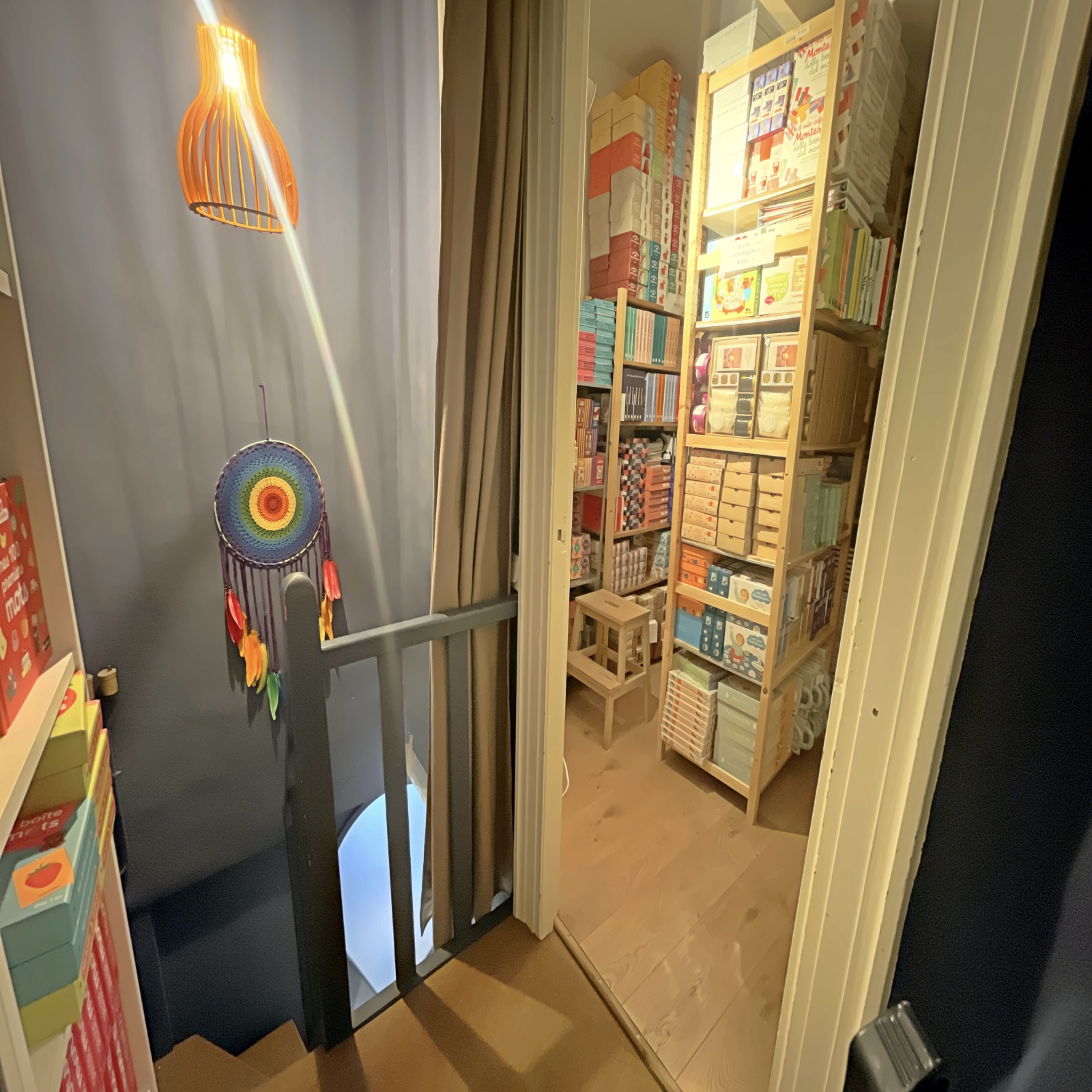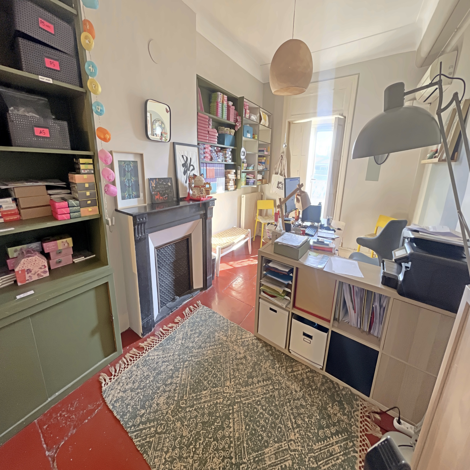 À l’étage un espace pouvant servir de stockage ou de bureau supplémentaire et un grenier. Balcon filant avec vue dégagée sur les toits, rangements intégrés, luminosité traversante.