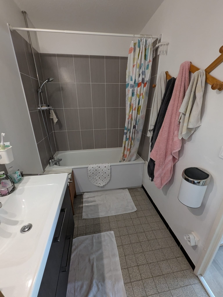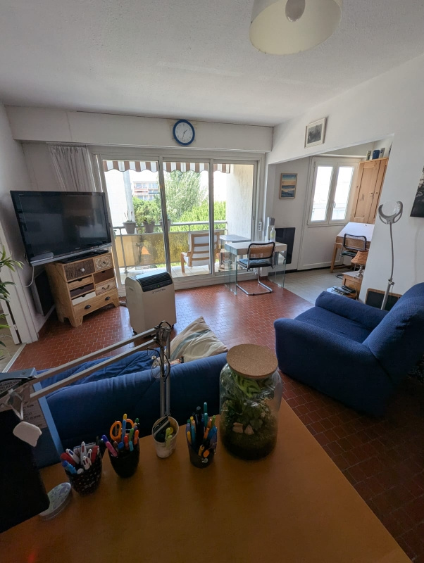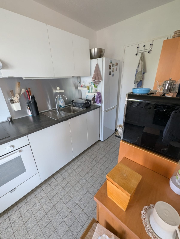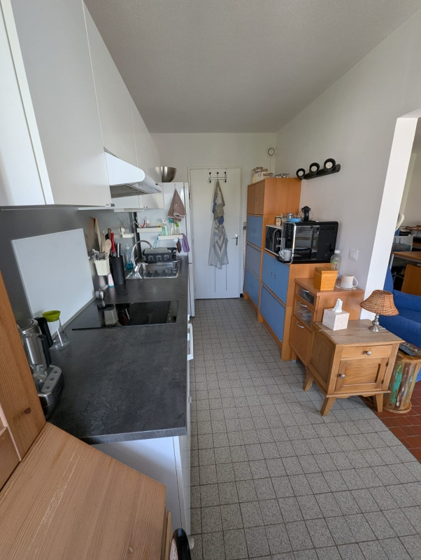 En résidence fermée, appartement très lumineux avec cuisine ouverte semi équipée, salle de bains, wc séparé et deux celliers.