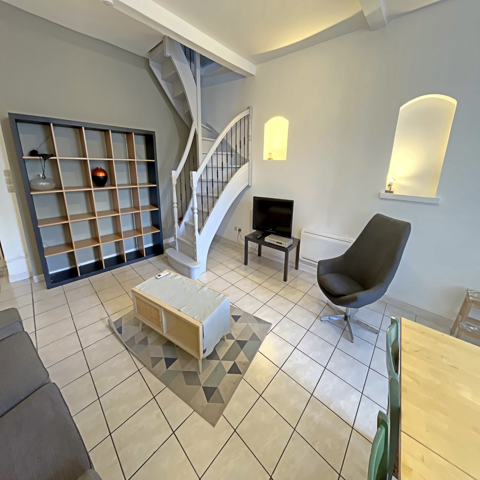 À deux pas de la Place de la Canourgue, charmant appartement meublé en duplex situé au 3ᵉ étage d’un immeuble ancien.