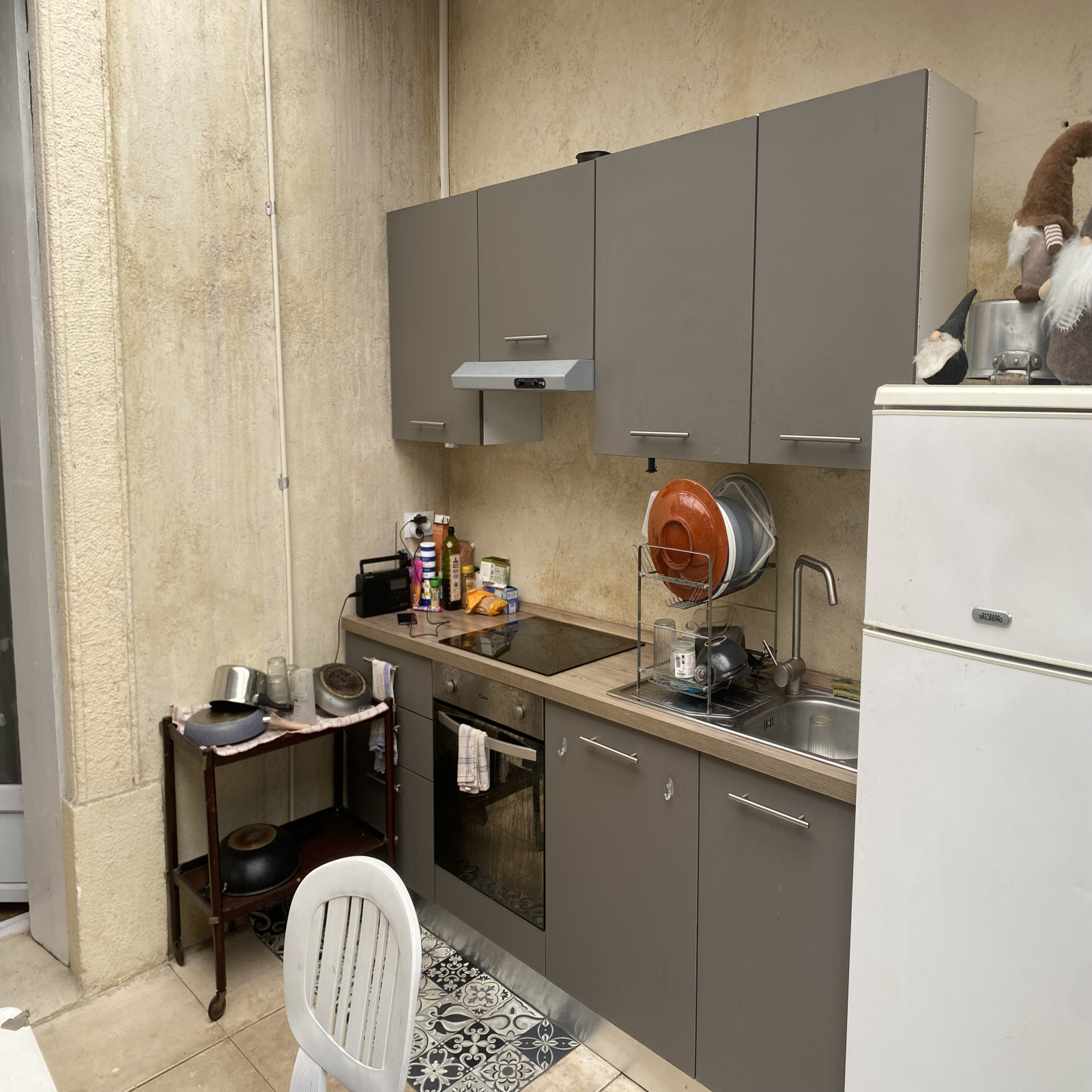 Dans une rue calme, T2 atypique de 38,9 m² comprenant un séjour, une cuisine en véranda donnant sur jardin, une chambre et une salle d’eau.