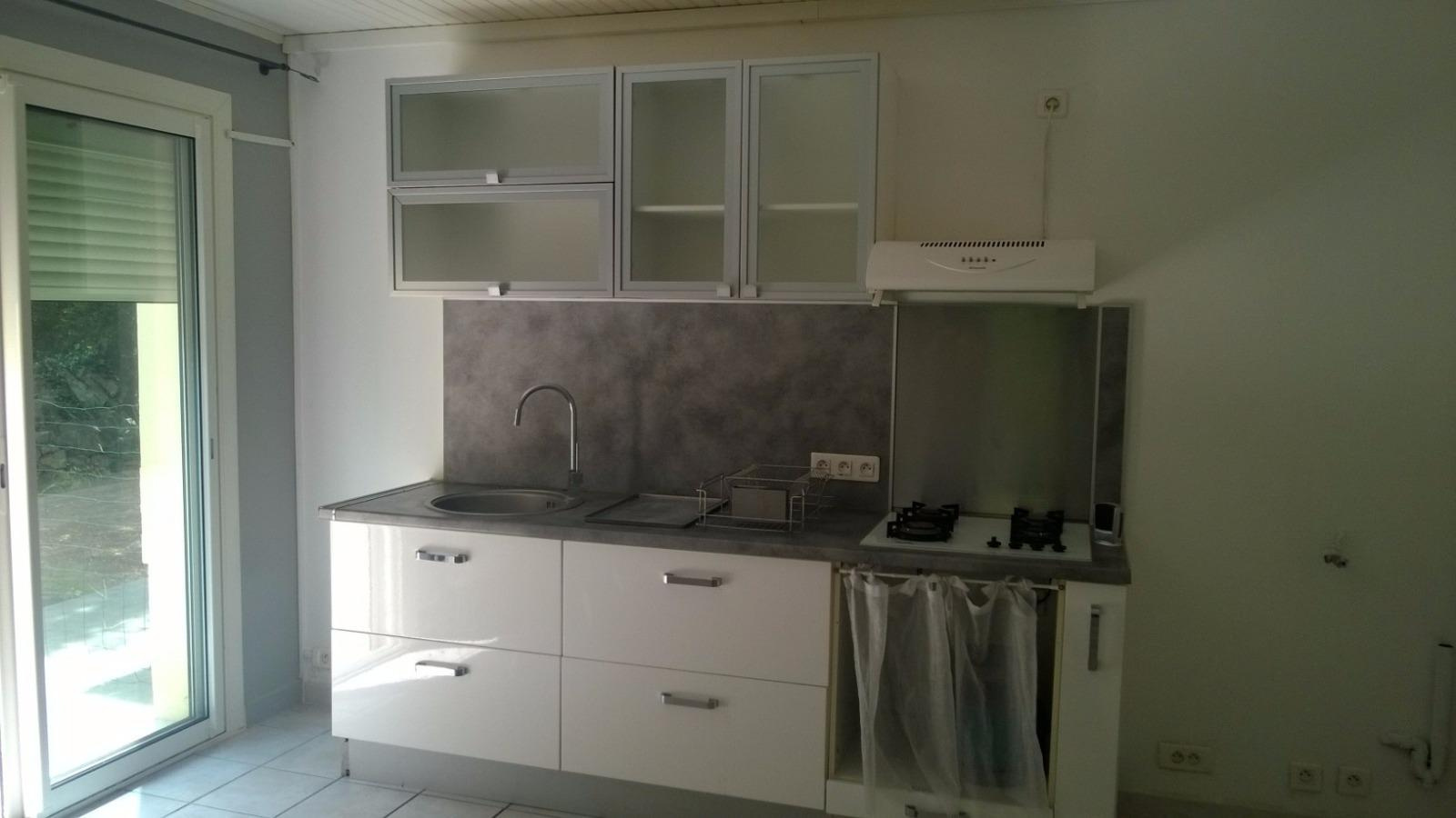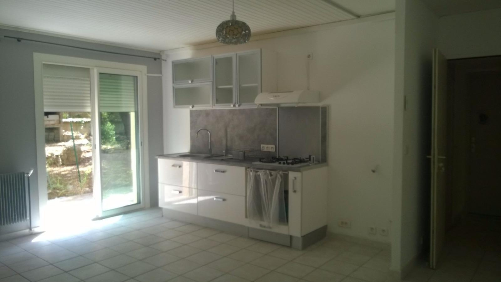 Appartement de type F2 de 32 m² composé d'un séjour avec cuisine intégrée et équipée (hotte & plaques chauffantes), une chambre, une salle d'eau. Accès à un petit jardin.