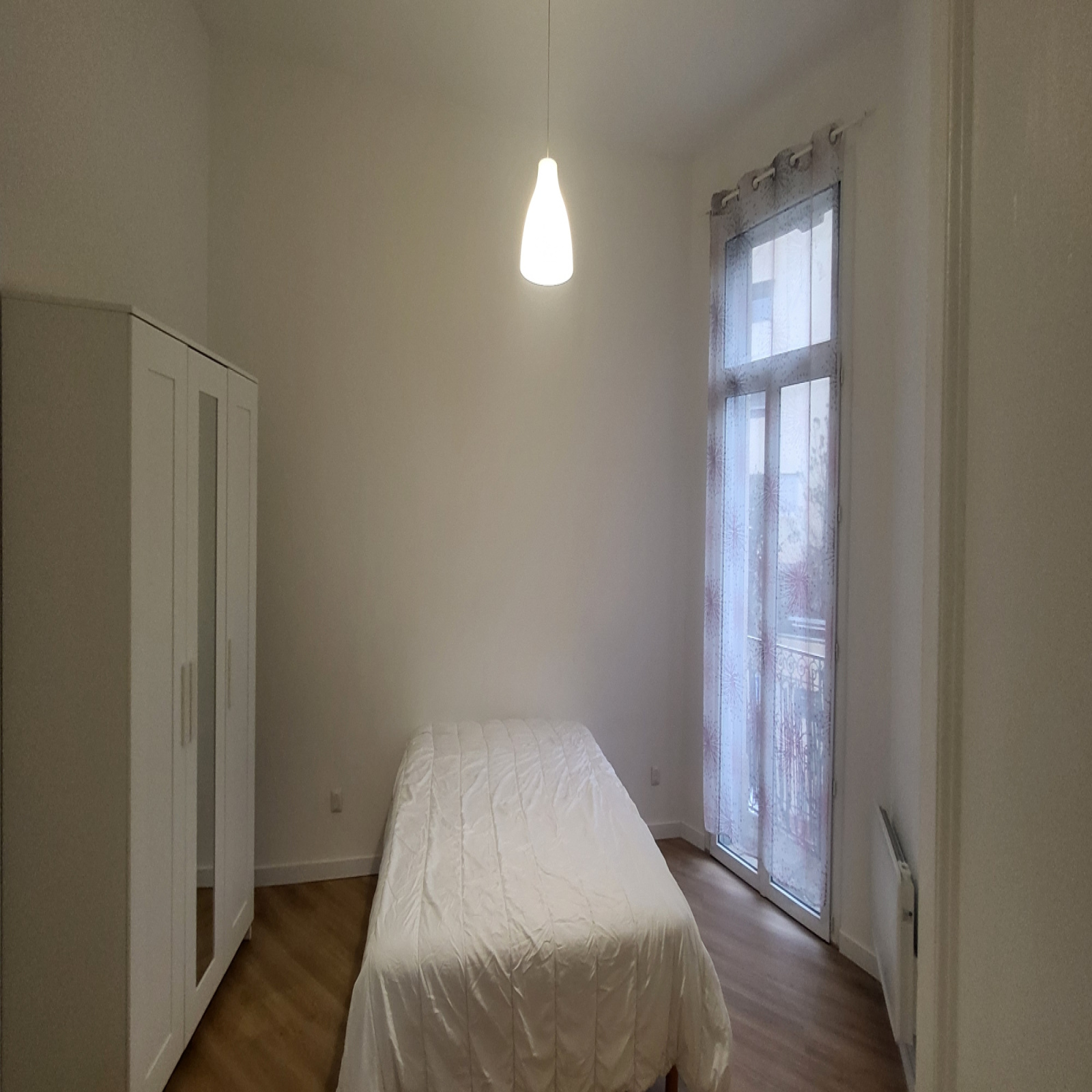 L’appartement est équipé d’un chauffage électrique et dispose d’un balcon de ville.