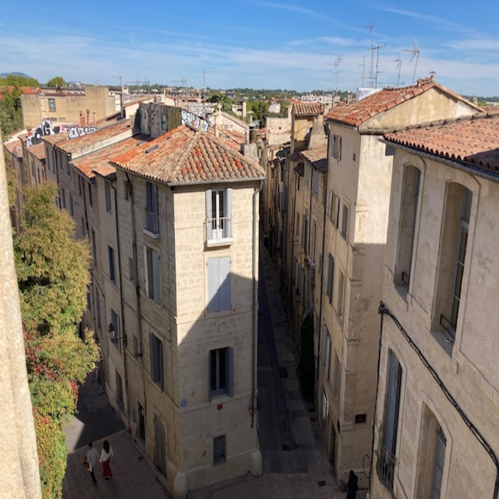 Place de la Canourgue, bel appartement meublé de type F3 en duplex au 3ème étage avec cuisine équipée ouverte, une salle de bains, un wc, une chambre et à l'étage un espace bureau plus une chambre. Chauffage électrique individuel. Climatisation.