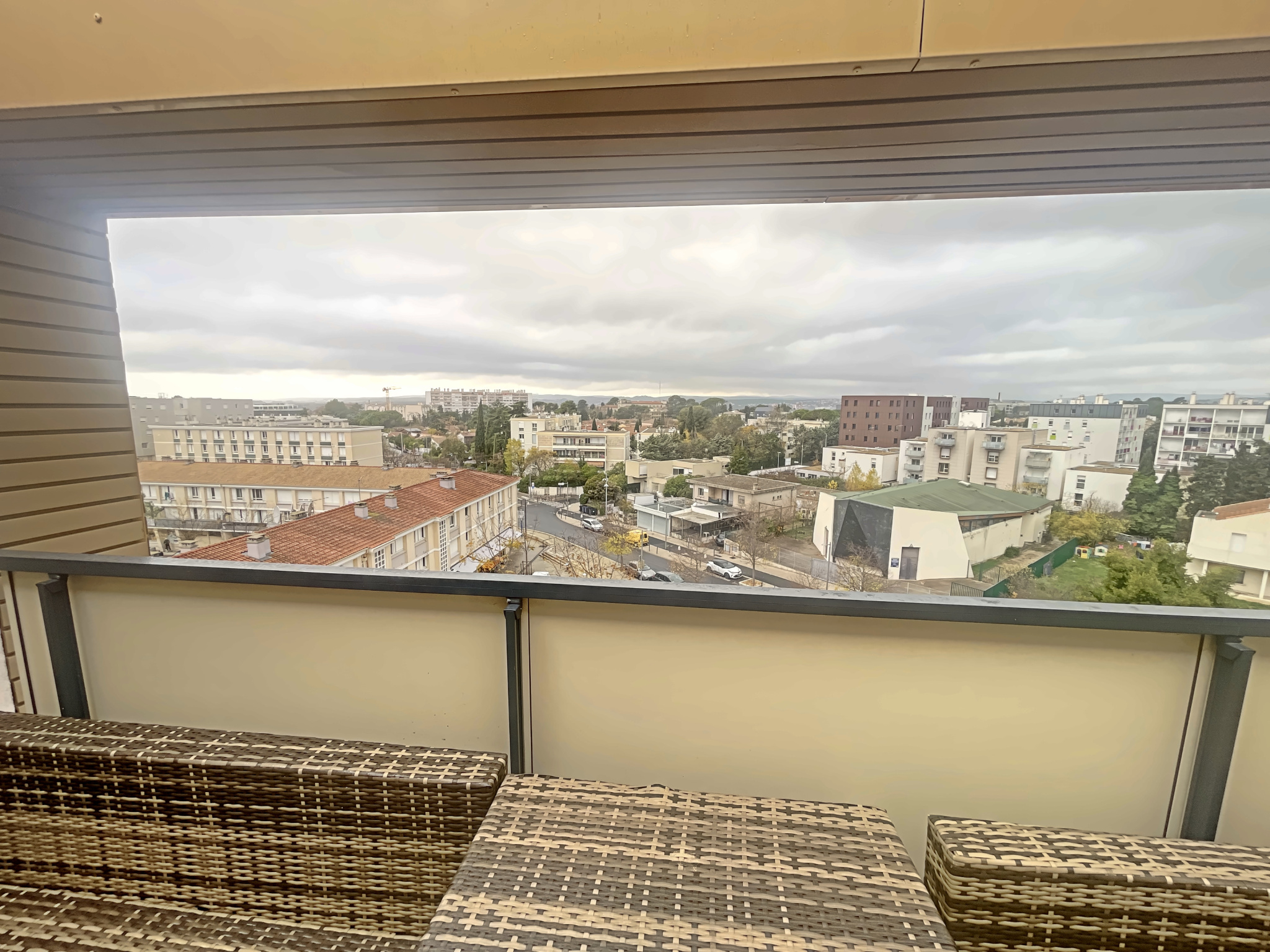 Dans une résidence, au 6ᵉ et dernier étage, appartement entièrement rénové comprenant une cuisine ouverte aménagée et équipée, deux chambres, une salle de bains, des WC séparés et une terrasse de 8,48 m².